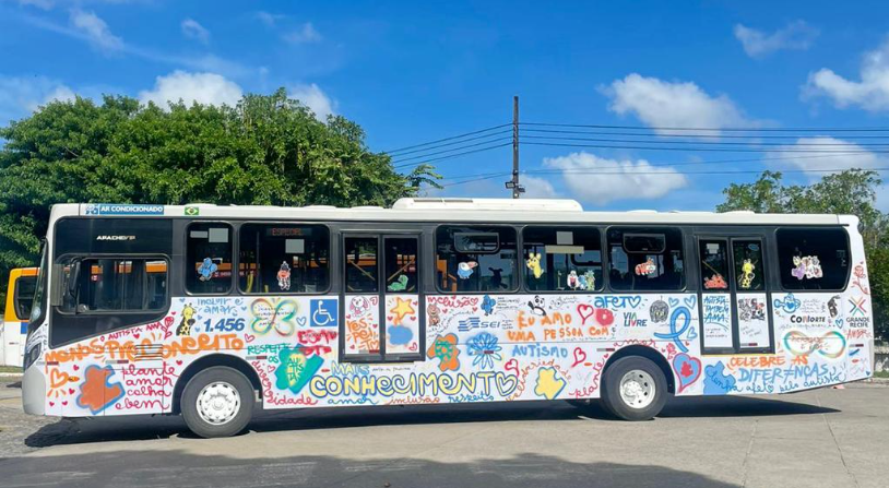 Ônibus do Conorte é grafitado com mensagens de respeito aos autistas